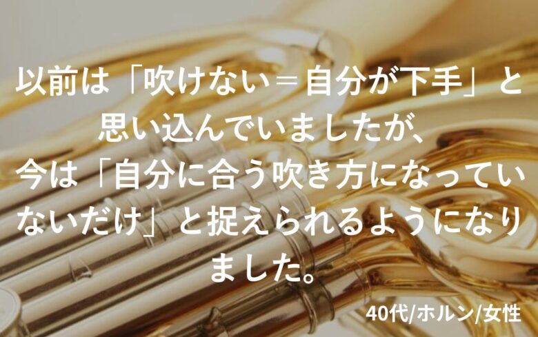 今は「自分に合う吹き方になっていないだけ」と捉えられるようになりました。