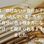 レッスンを受け続けるうちに、苦手だったりできないと思っていたことも、やり方によってはできるようになりそう、と考えられるようになりました。演奏に対して自己肯定感が低いタイプなので、これは大きな変化です! 念願であった社会人オーケストラにも参加しました。