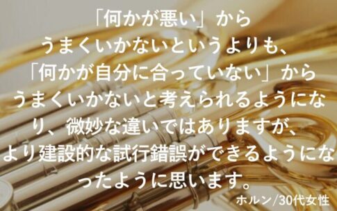 レッスンを悩むのであれば、一度レッスン受けられてみてください。悩みがこんなに変わるのかという体験をしてみてもらいたいです。長年の悩みの解消の近道、もしくは今後の長い楽器経験の中の大きな土台となると思います。